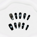 The Midnight Ink - wash Nail Art uses black as the main color, like the deep night, giving a mysterious feeling. The nails feature white ink - wash style patterns, showing a unique artistic sense. These patterns, some resembling flowers and some like branches and leaves, are like ink charm under the moonlight on the black base, presenting a low - key yet luxurious aesthetic. This nail art is suitable for people who pursue individuality and artistic sense. Whether at night parties or in daily outfits, it can make your fingertips exude unique charm.
