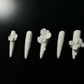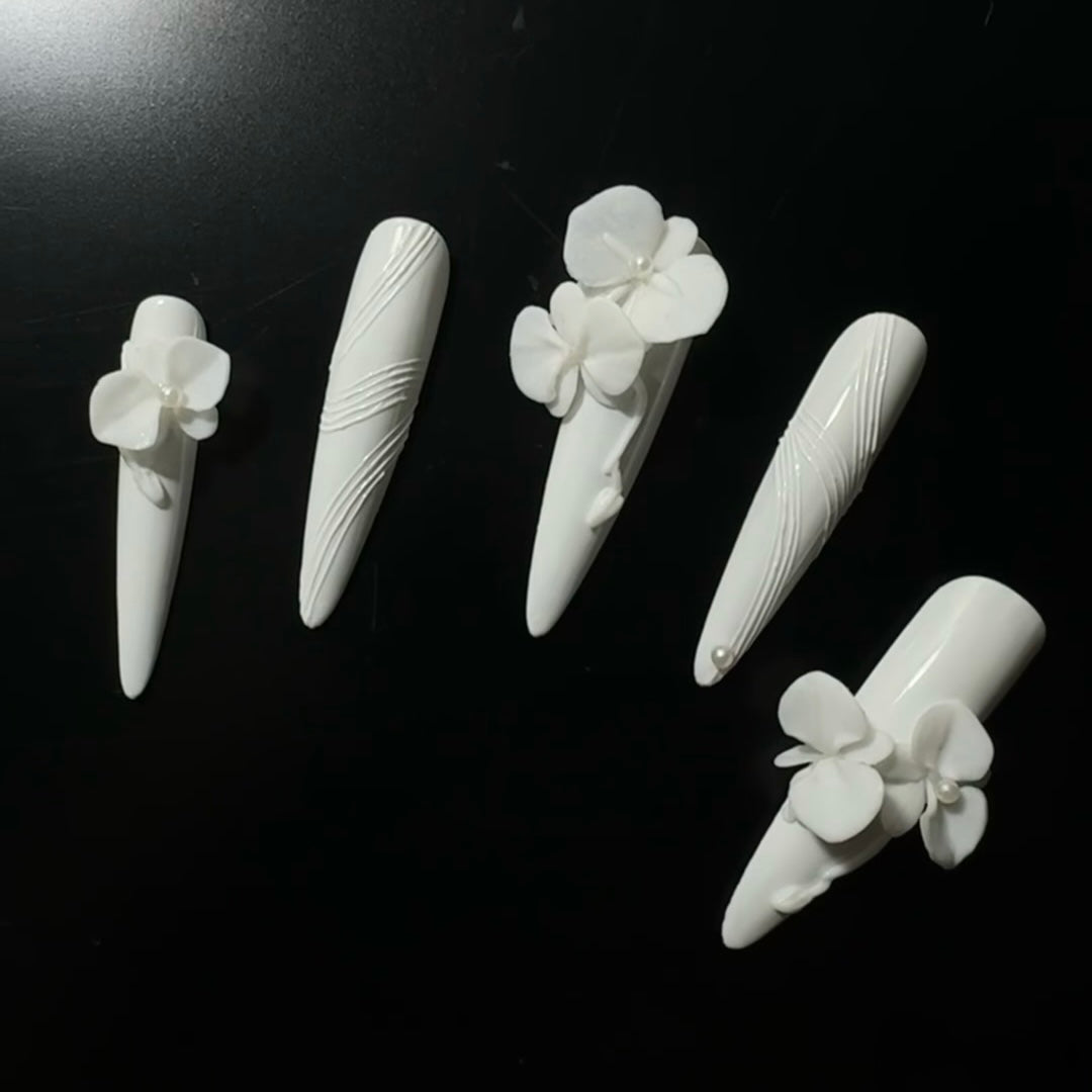 Introducing the LEXI Nail Art Set, the epitome of sophistication designed to perfectly complement your luxurious satin wedding gown. This exquisite collection features a pristine white base, elegantly adorned with intricate handcrafted floral accents, embodying the simplicity and grace of modern bridal aesthetics.