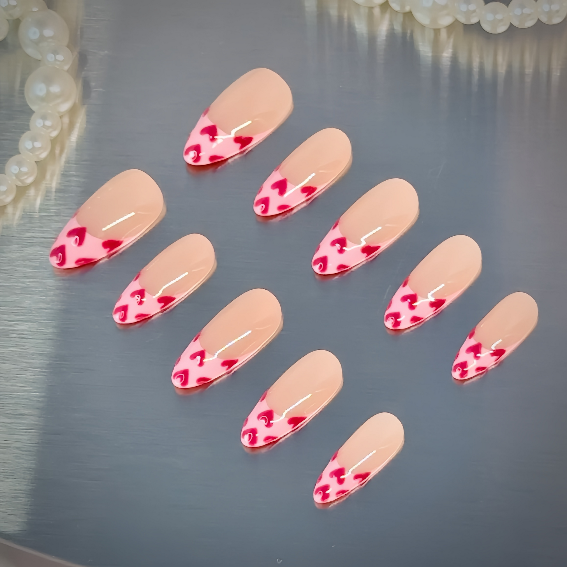 Fall head over heels with our Love Struck Nail Art Set! This charming collection features a lovely blend of soft nude and vibrant red, adorned with playful heart designs that capture the essence of romance. Each nail showcases a delightful heart motif, perfect for expressing your love and adding a playful touch to any occasion. With easy application, these press-on nails let you celebrate love effortlessly, whether it's for a special date or just to brighten your day.