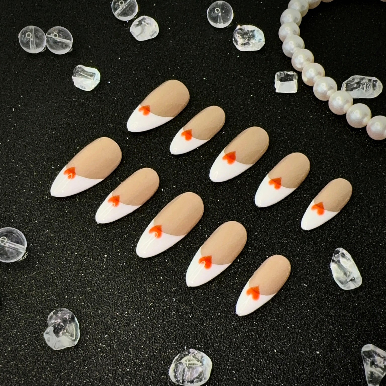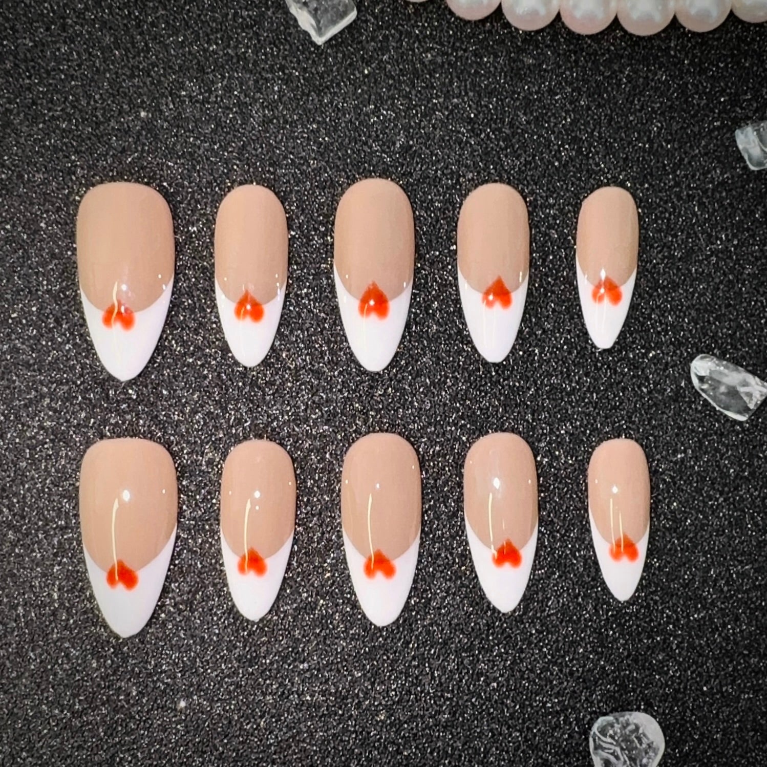 Add a touch of charm to your style with our Sweetheart Nail Art Set! This delightful collection features a soft nude base paired with classic white tips, elegantly adorned with playful red heart accents. Each nail design captures a sweet and romantic vibe, making it perfect for special occasions or simply to brighten your everyday look. With easy application, these press-on nails let you express your love and creativity effortlessly.